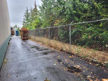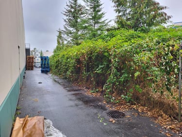 This is at an industrial park off Broadway in Port Coquitlam. The blackberry removal before and after pics speak for themself. The fencline backs onto a municipal area that has a ditch. All blackberry removal was performed by hand. The picture doesnt really do justice as the blackberry area we cleared was 200 feet long, 8 feet wide and the growth was 15 feet tall in some areas.