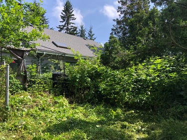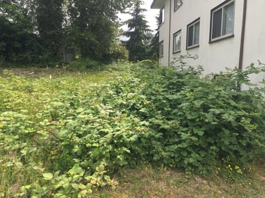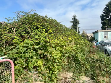 Overgrown Himalayan blackberry jungles turned back into usable yards, gardens, play areas, and restored views — 100% chemical-free, roots removed, debris hauled away.